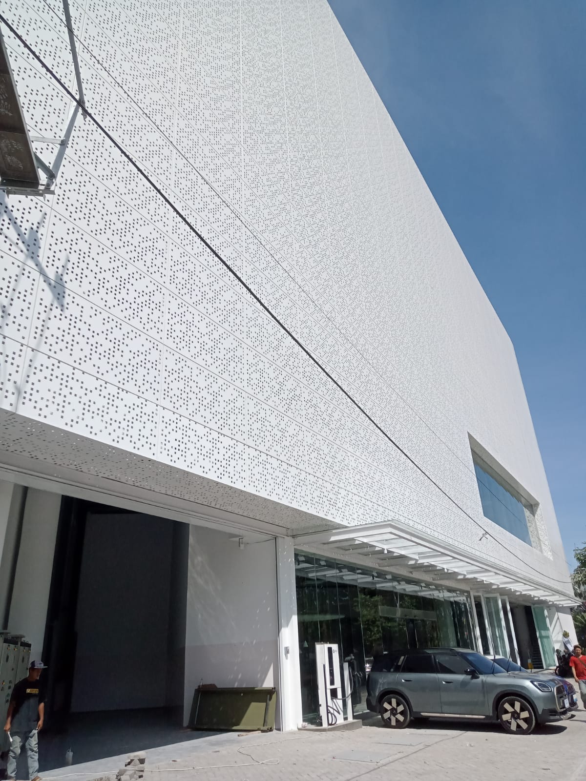 ACP Perforated adalah Aluminium Composite Panel (ACP) yang permukaannya dilubangi (di-perforasi) dengan motif tertentu menggunakan mesin CNC untuk menciptakan efek estetika, tekstur, ventilasi udara, dan sebagai secondary skin pada fasad dan interior bangunan seperti, hotel, rumah sakit, showroom, kantor, dan rumah tinggal.