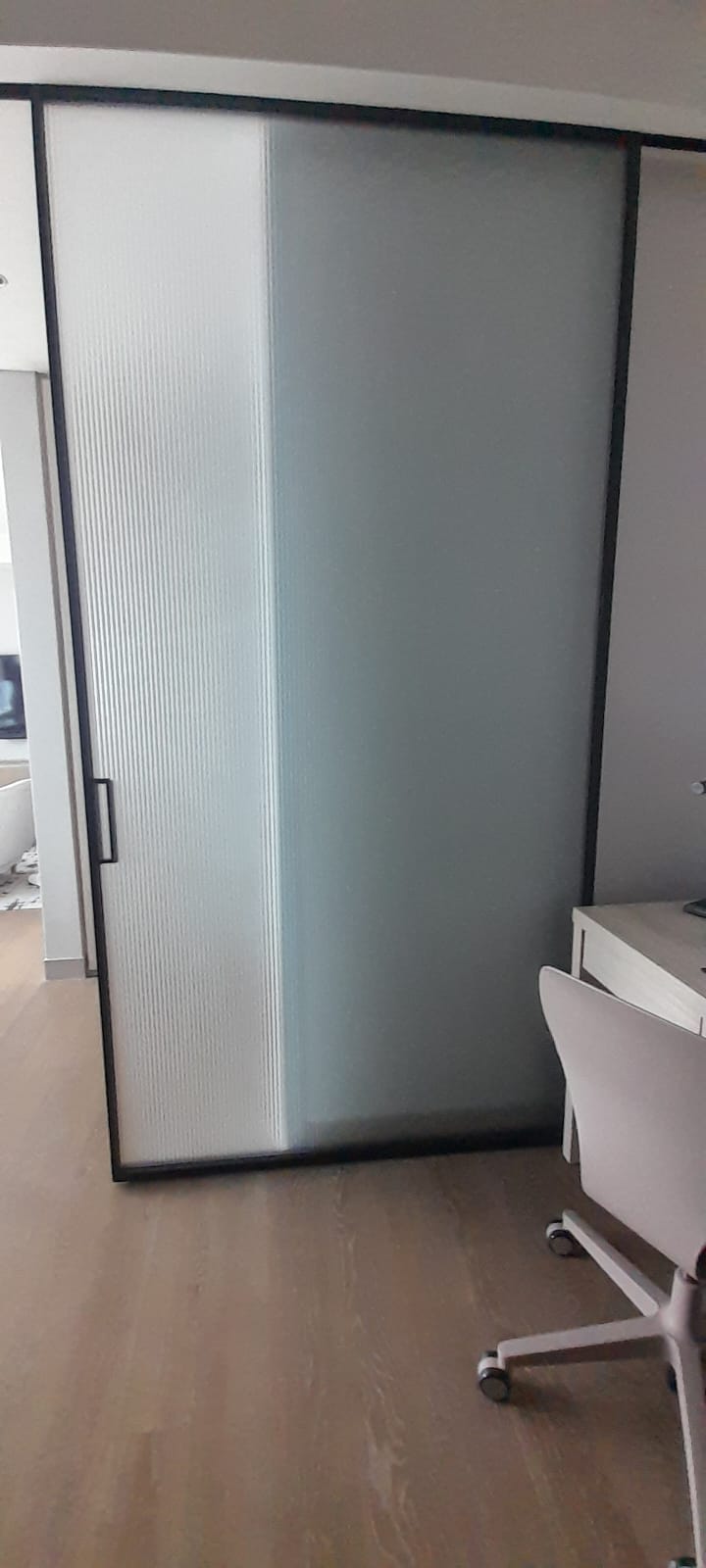 Kaca es adalah jenis kaca buram yang permukaannya memiliki tekstur atau pola, berfungsi untuk memberikan privasi tanpa sepenuhnya menghalangi cahaya, serta dapat digunakan sebagai elemen dekoratif dalam desain interior seperti partisi ruangan, pintu, atau jendela